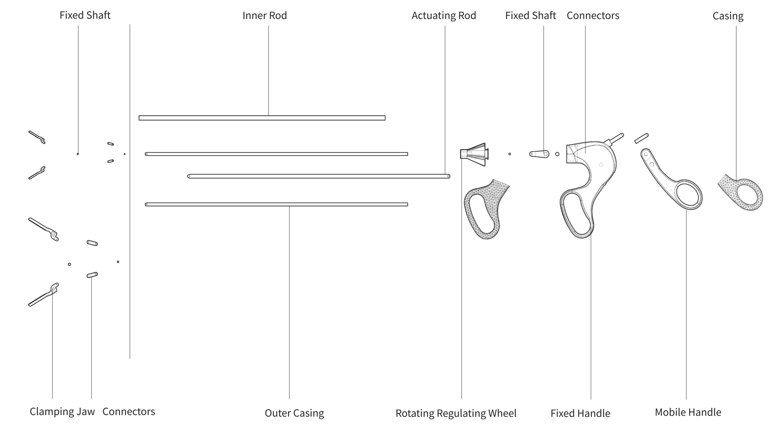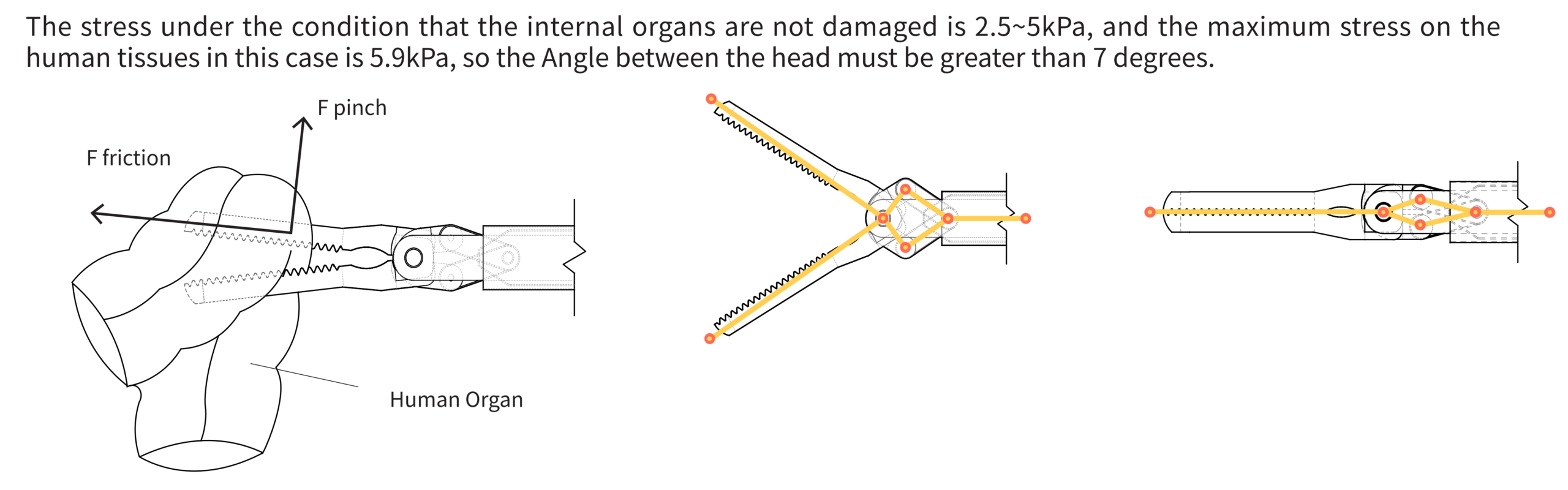 This project aims to design a new laparoscopic grasper that minimizes tissue damage and reduces fatigue. We studied existing graspers, analyzed their mechanical models, and identified key areas for improvement. Using software like Abagus and Adams, we performed finite element analysis and established the relationship between handle and jaw angles to optimize the design. The grasper was modeled in SolidWorks, ensuring ergonomic and functional efficiency. Our design uses PPSU material for the handle and shaft casing, with martensitic stainless steel for other parts.